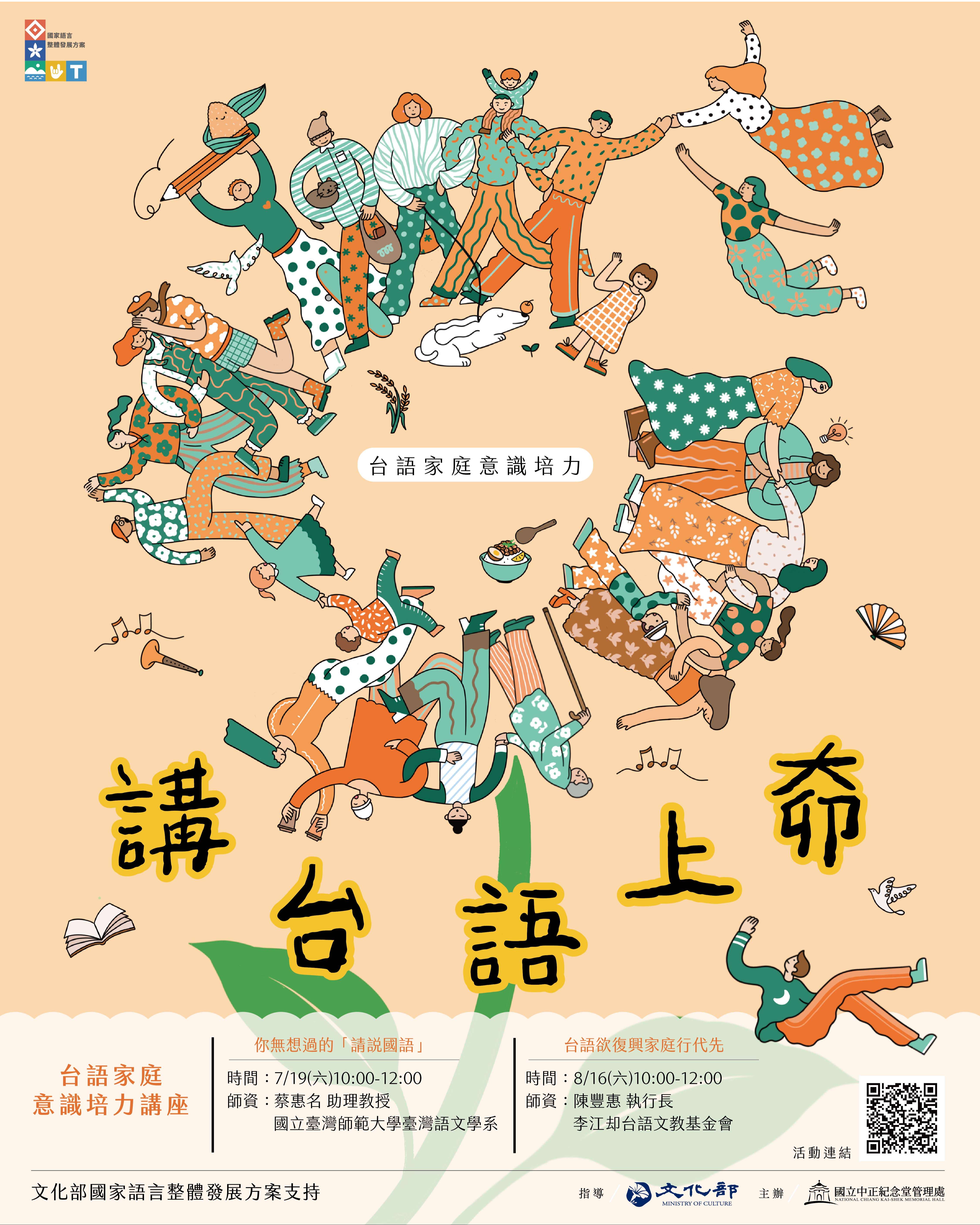 四、各課程配合文化部「培育台語家庭計畫」集點,歡迎台語家庭參與學習;且講座課程可依參與時數核發公務人員終身學習時數,詳情請洽國立中正紀念堂管理處官網(https://www.cksmh. gov.tw/),查詢路徑如下:官網/推廣教育/國家語言推廣活動。