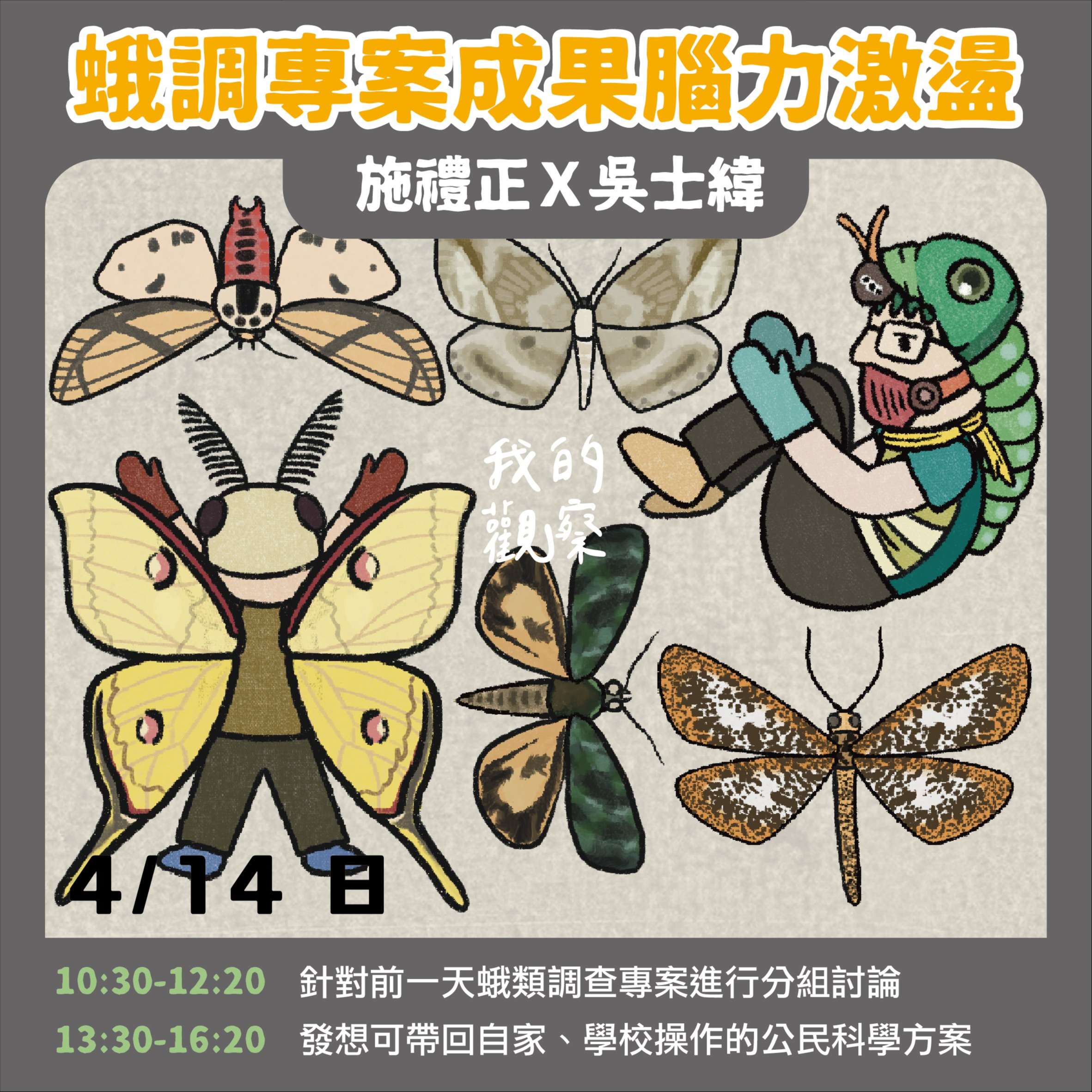 2、課程簡介:結合FB社群與「iNaturalist」專案實作分 享、專案探討—「慕光之城:臺灣飛蛾紀錄網」, 臺 北暗夜之美—蛾類調查野外實習。