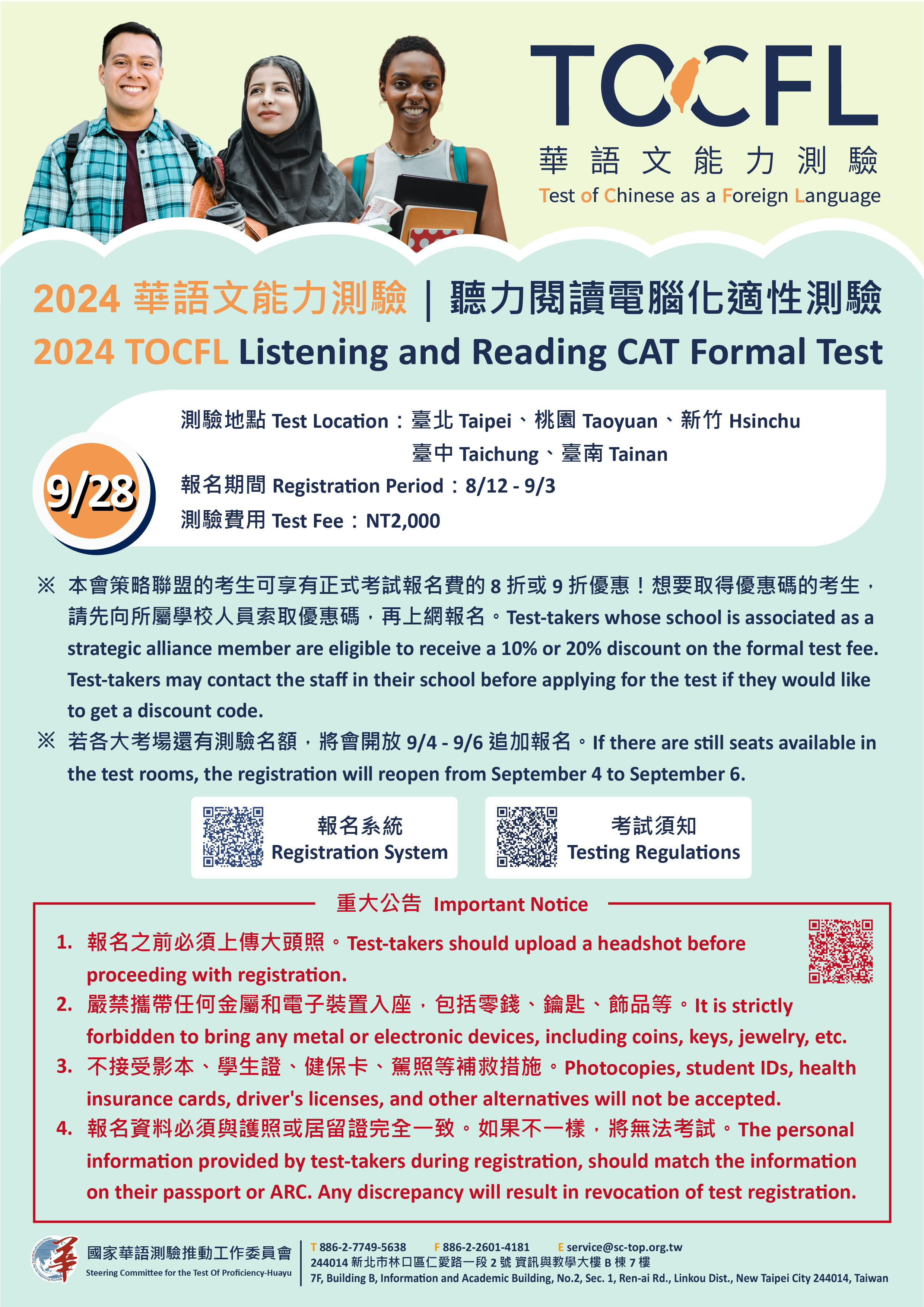 一、依據國家華語測驗推動工作委員會113年8月8日華測字第1132000114號函辦理。