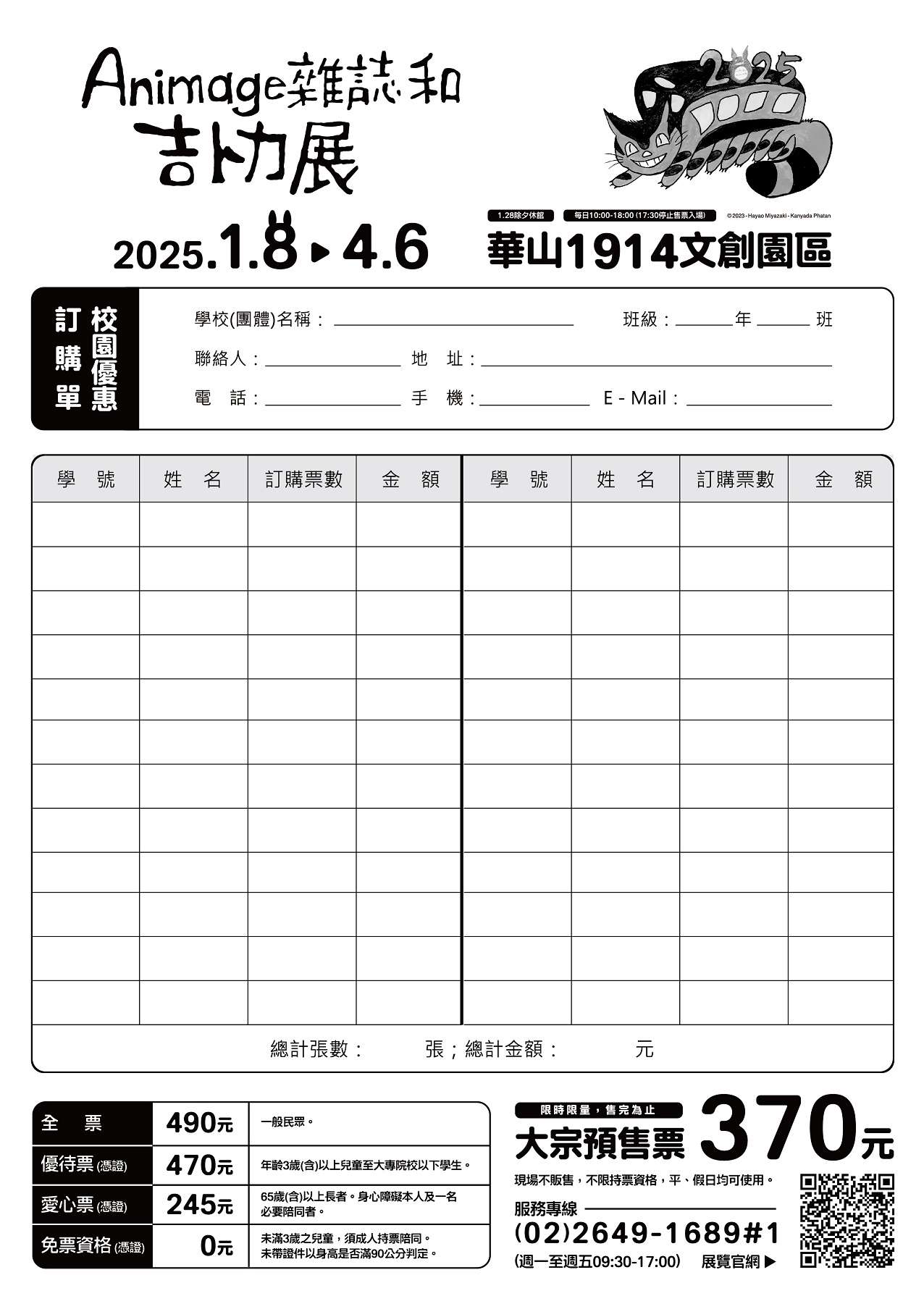 八、檢送本活動海報、電子文宣正、反面、訂購單,呈請貴校 員工、師生及家長踴躍參加。