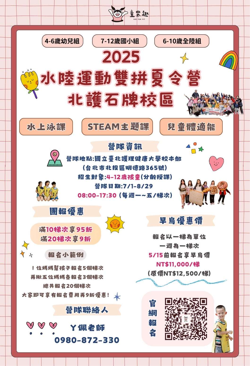 四、招生對象:幼稚園中班至國小(足4歲至12歲)