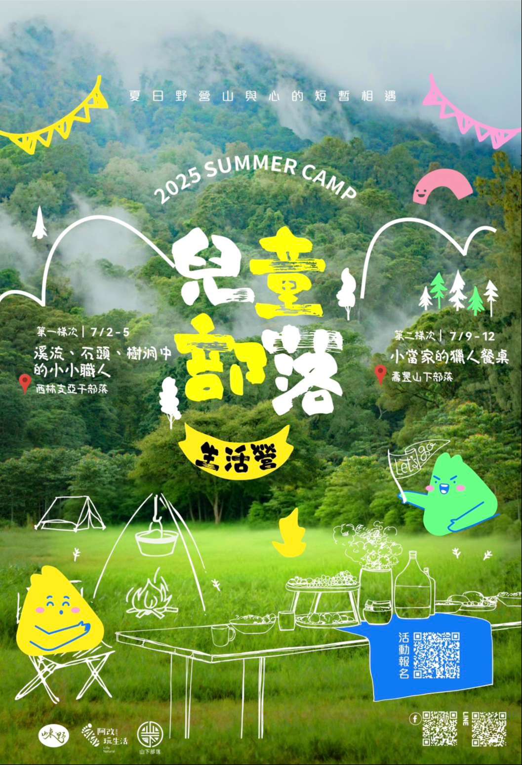 一、「2025兒童部落生活營」由山東野表演坊、阿改玩生活及 山下部落三個花蓮在地團隊共同主辦,融合戲劇遊戲、部 落手作、自然探險及原住民文化等內容,讓孩子在自然與 文化交織的場域中學習與成長。