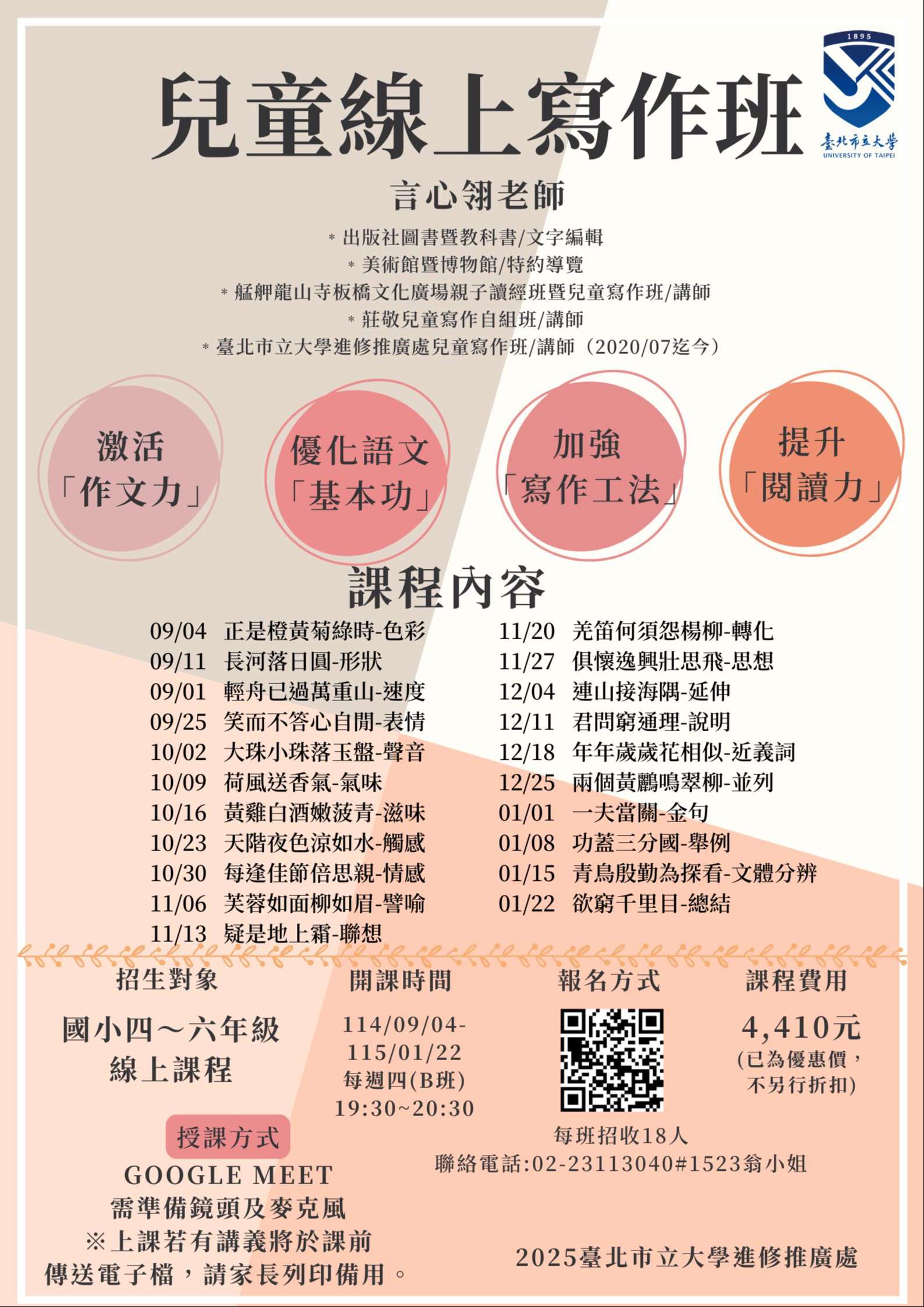 六、檢附課程招生海報1份,如有課程相關疑問,請逕洽本案承 辦人翁小姐(02-23113040轉分機1523)。