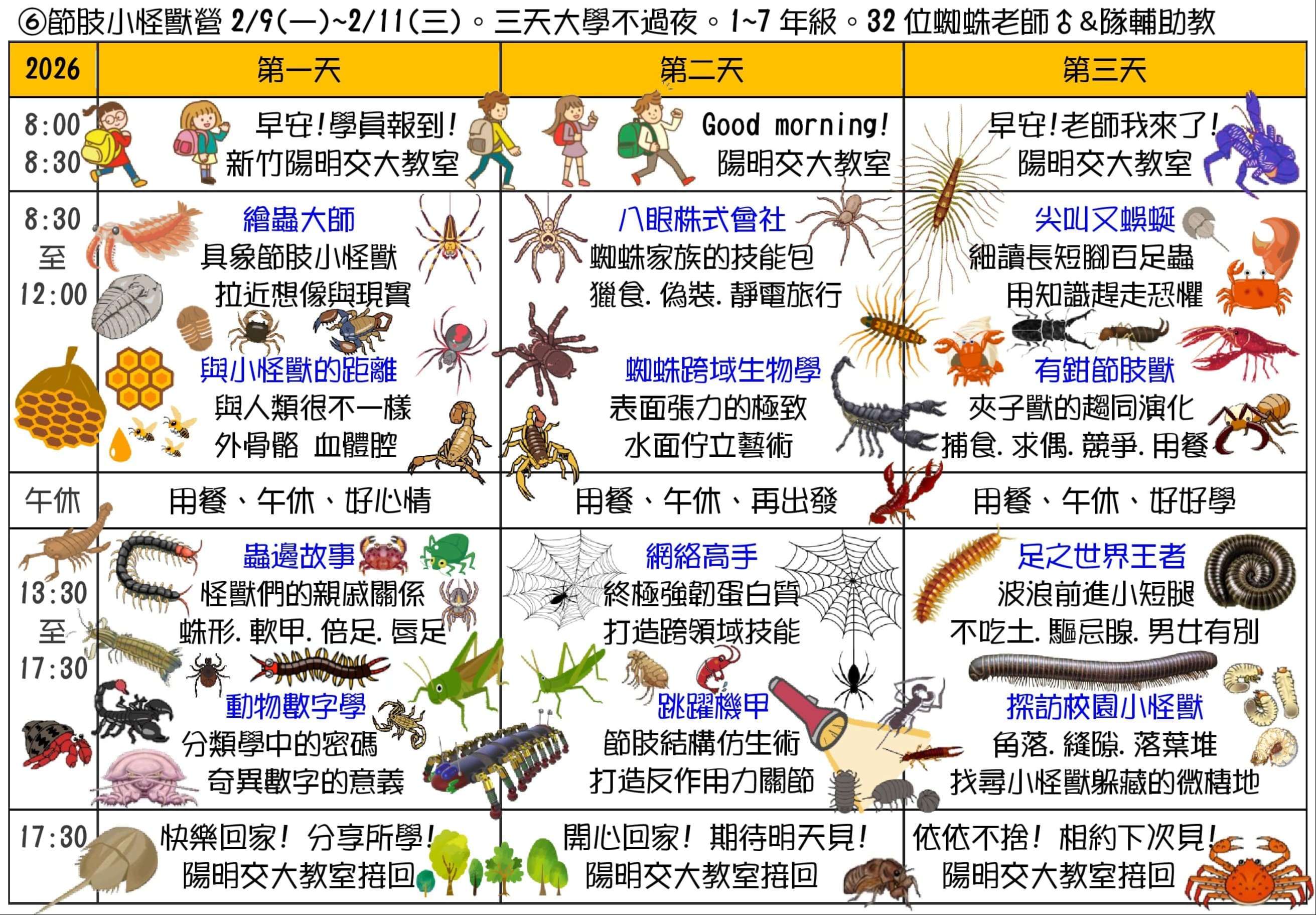 愛上大自然文教將於115年寒假辦理【大樹聚 島航去】 2026生態素養冬令營共七個梯次,暨參展2026第七屆臺灣 國際昆蟲博覽會活動。