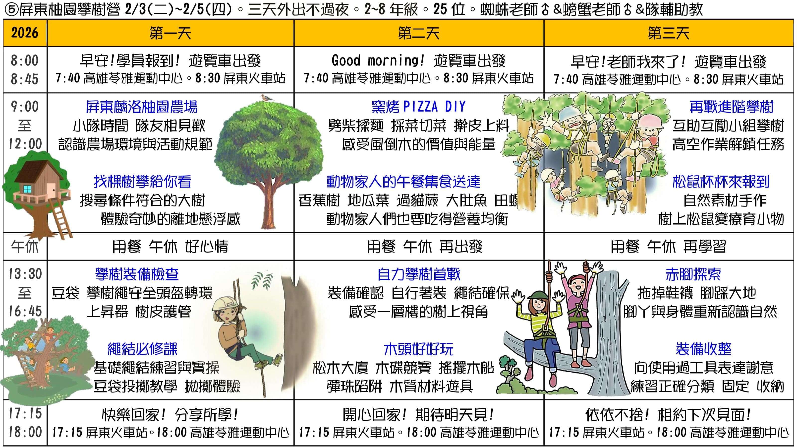 一、2026生態素養冬令營日期1/24~2/12,招生一-九年級學 員,依不同課程分齡參加,詳細請見營隊課程網站 https://www.i3nature.com.tw/ 。