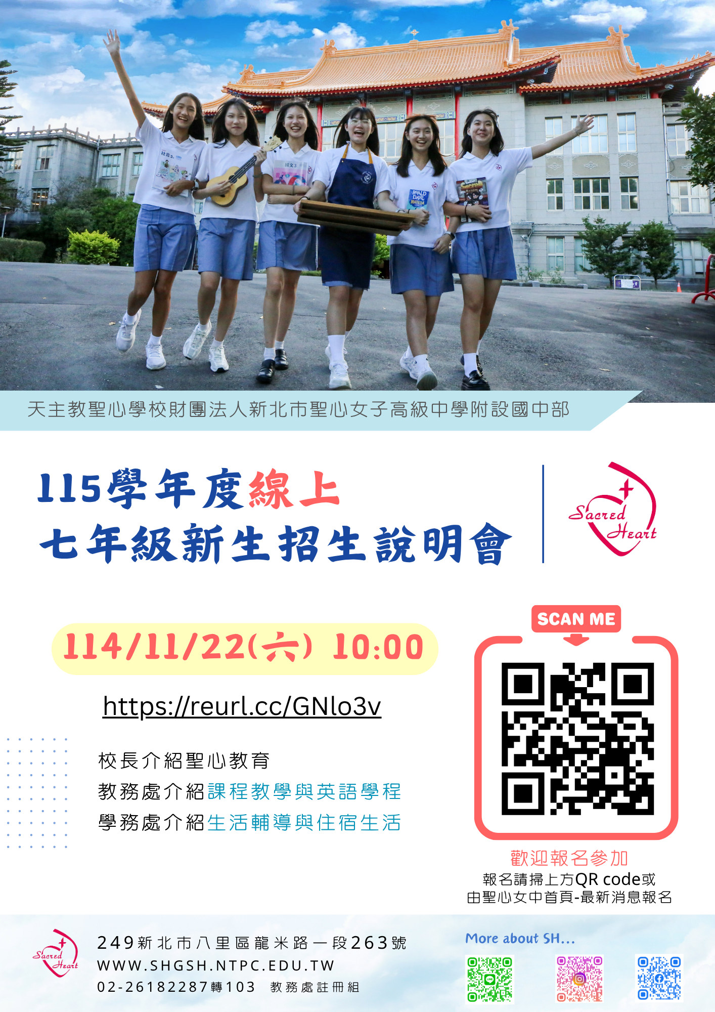 (二) 聖心女中首頁www.shgsh.ntpc.edu.tw—最新消息--115 學年度七年級新生線上招生說明會