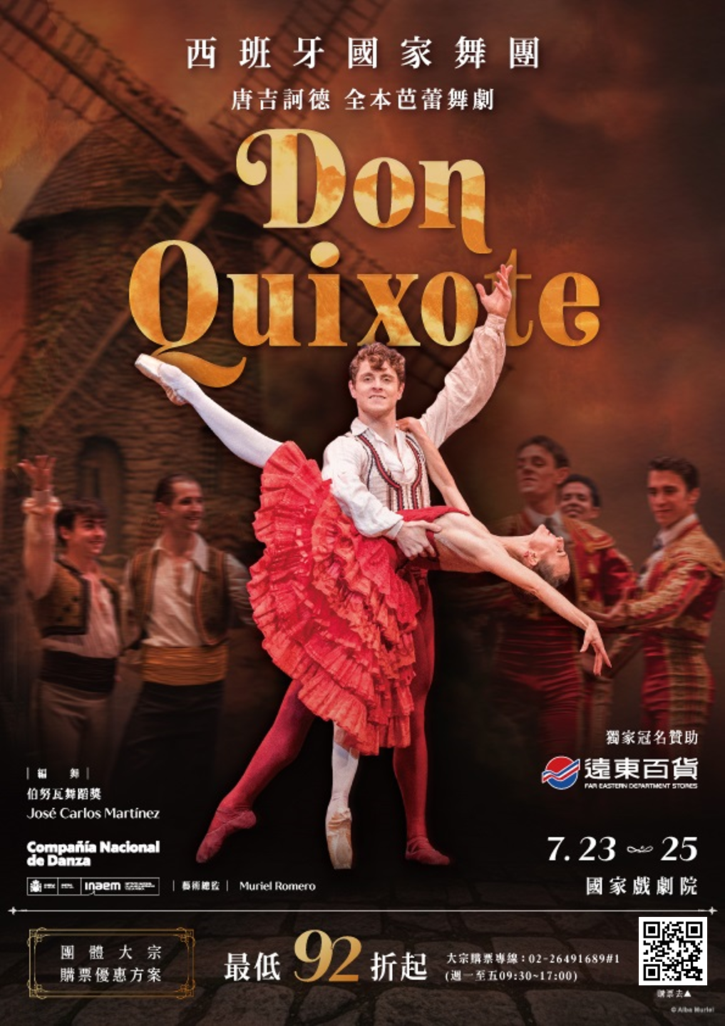 (十)此次,由「遠百獨家呈獻西班牙國家舞團攜全本芭蕾舞 劇《唐吉訶德》」來台,不僅是一場國際級芭蕾盛會, 更是一場跨越文學、音樂與舞蹈的西班牙文化饗宴,帶 領觀眾走進《唐吉訶德》內理想與愛情交織的奇幻世 界。